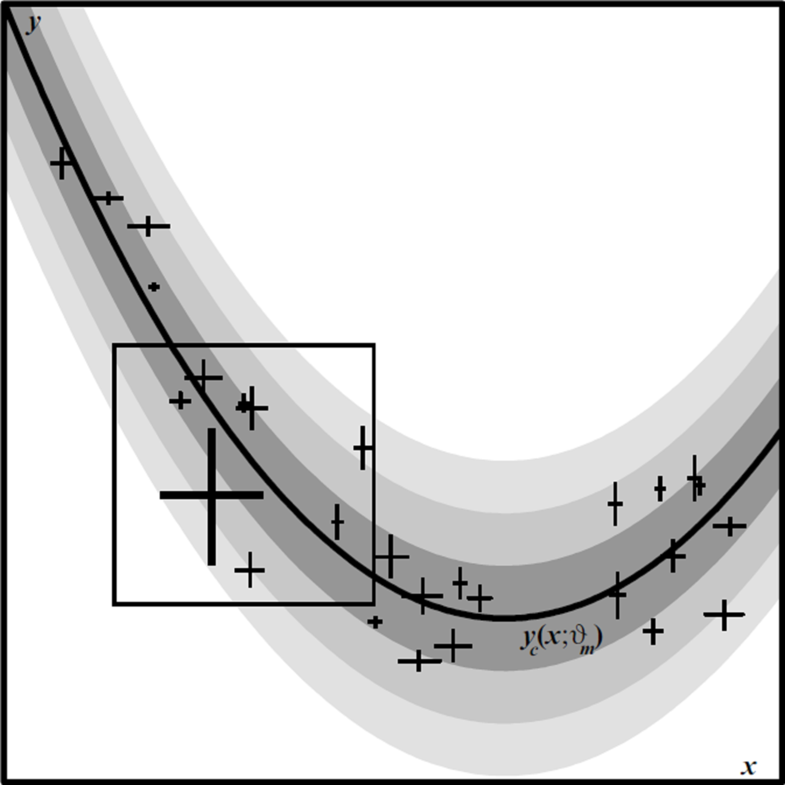 This is a new way of thinking about regression – as something that takes place in a model’s parameter space, instead of in the measurement space. In fact, in Konz et al., in preparation, we show that least-squares regression, performed on measurements, is mathematically equivalent to taking the weighted mean of these parameter values, for each parameter. In this sense, least-squares regression is but one, limited, option, corresponding to the simplest thing one might try in parameter space.